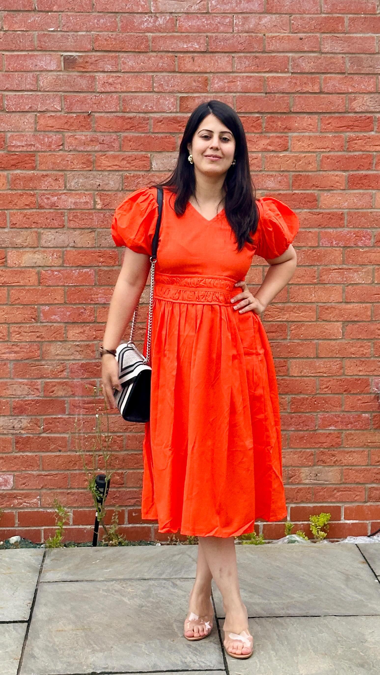 Indulge in luxurious linen cotton with our Midi Dress. This captivating V-neck design boasts elegant puff sleeves, and a flattering cinched waist with delicate pleats. Elevate your wardrobe with this exclusive piece, perfect for any occasion.