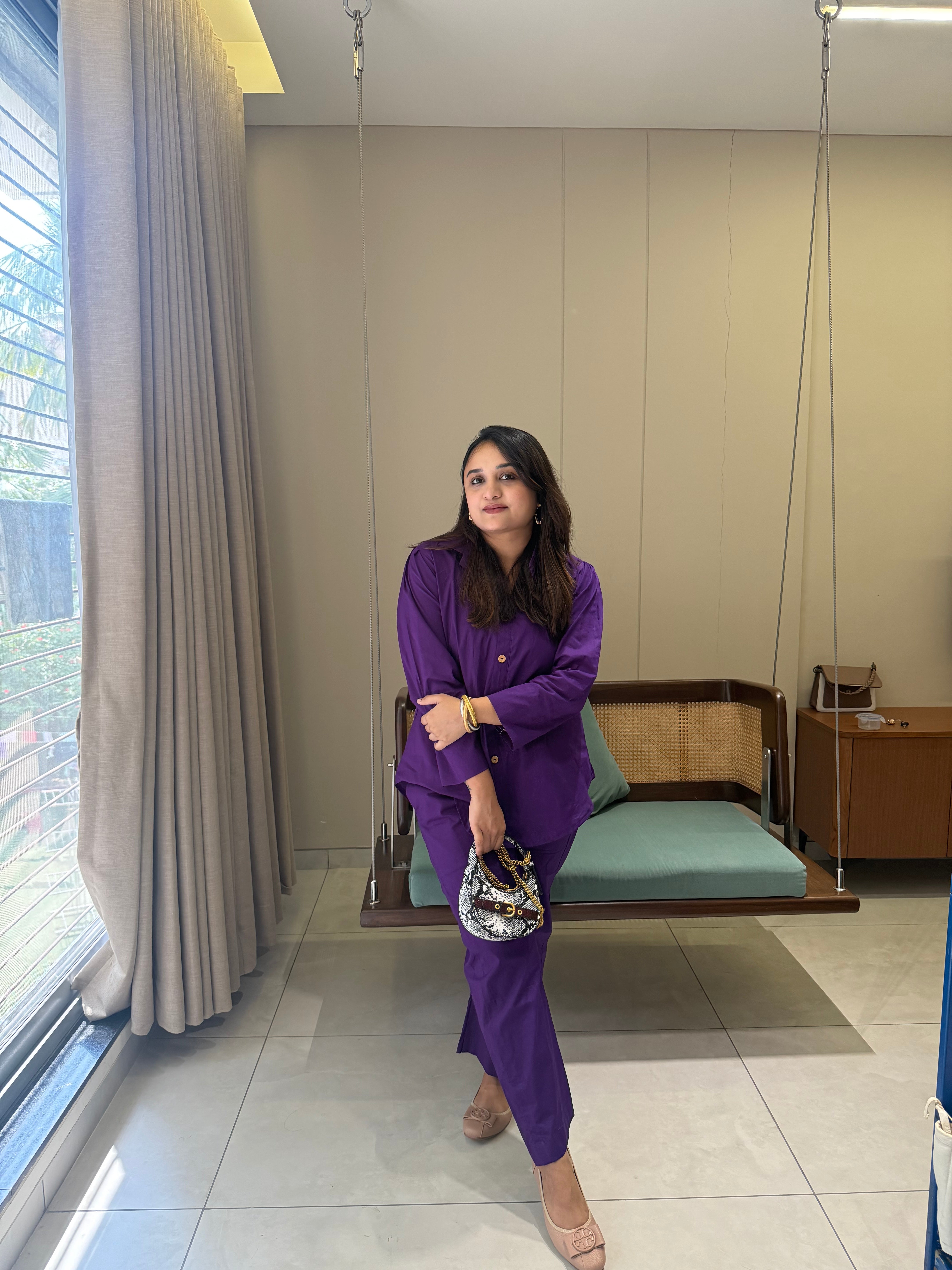 • Step into effortless elegance with this Urban Plum Coord Set, crafted from a breathable linen-cotton blend that keeps you stylish and comfortable all day long. The rich plum hue adds a bold yet sophisticated touch, making it versatile for both casual outings and semi-formal occasions.
